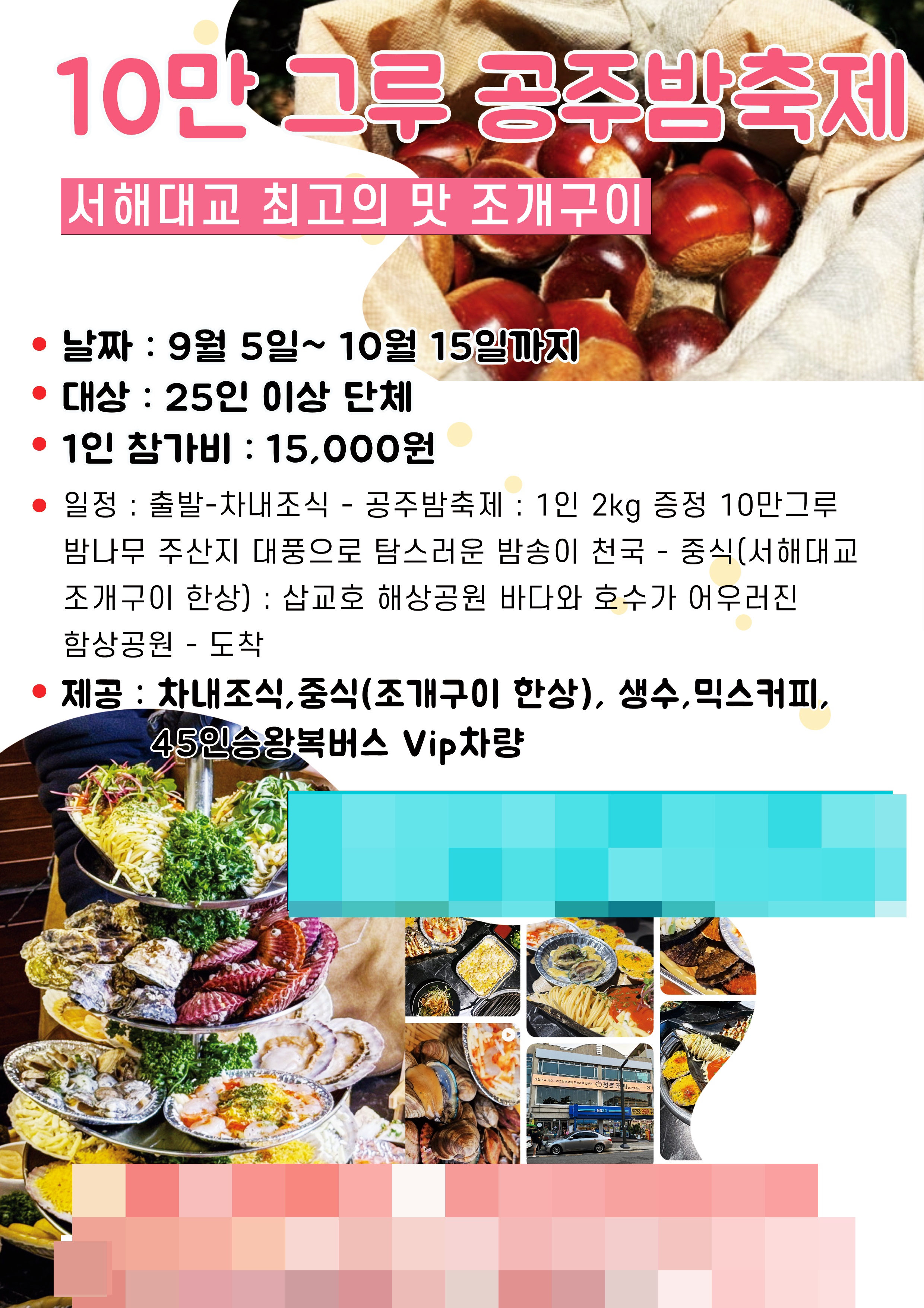 [전국 출발] 당일!!! 공주 밤 축제 & 서해안 조개구이 여행 우리 같이 가을에 향연에 빠져보자