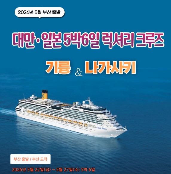 [서산출발] 6월13일 출발확정 한국. 일본. 대만. 3개국 크루즈 '코스타 세레나호'로 떠나는 7일 “바다 위에서 시작되는 가장 품격 있는 여행” [럭셔리 크루즈]